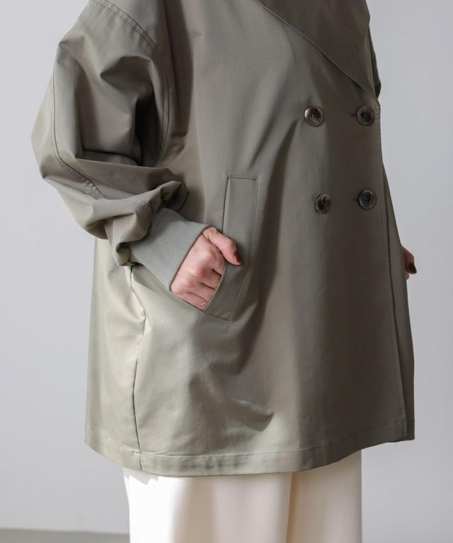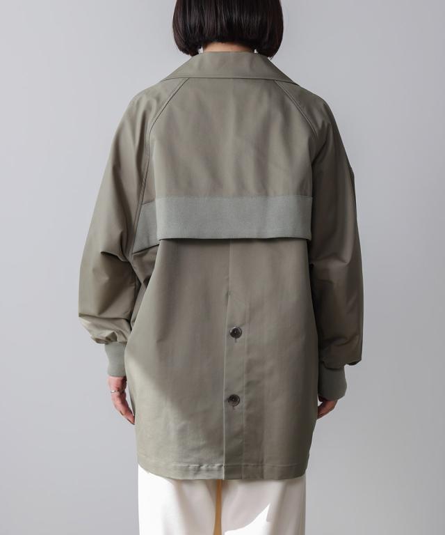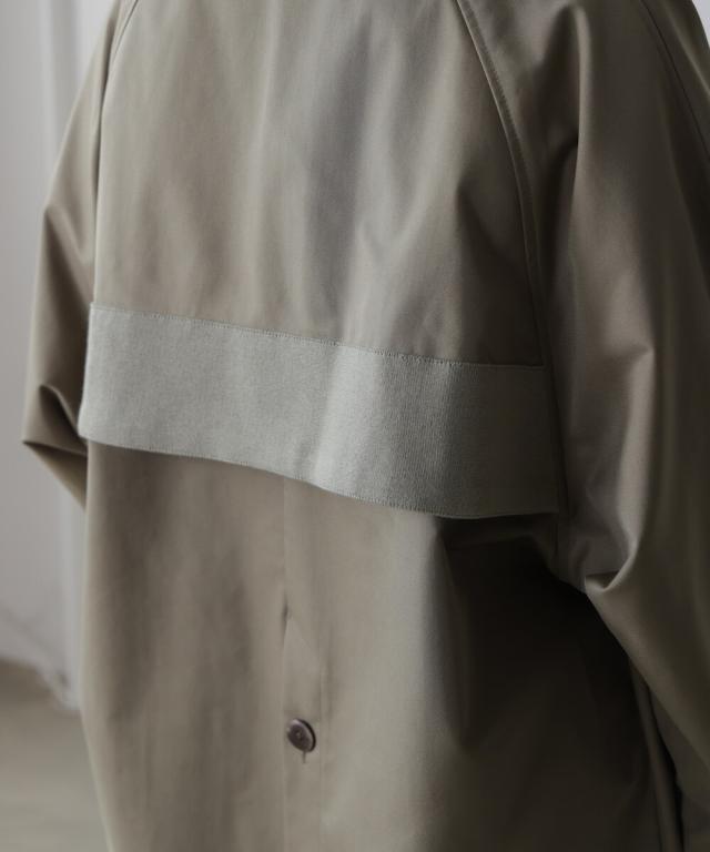 バックスタイルで差がつく!ミリタリートレンチコート。後ろにニット素材がドッキングされたバックシャンデザイン。オーバーサイズシルエットでゆったりお召し頂けます。袖にリブが入ったデザインで、腕をまくって頂くと抜け感も出て◎