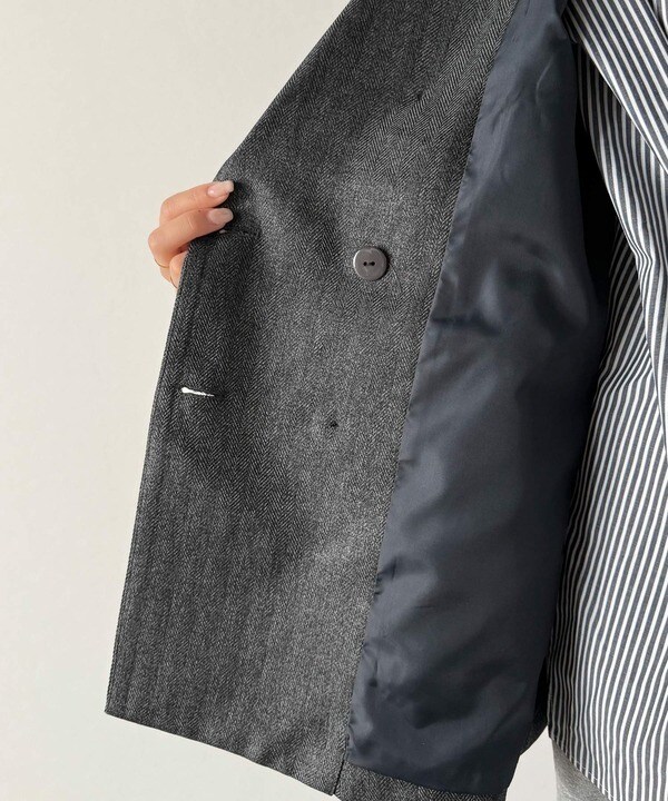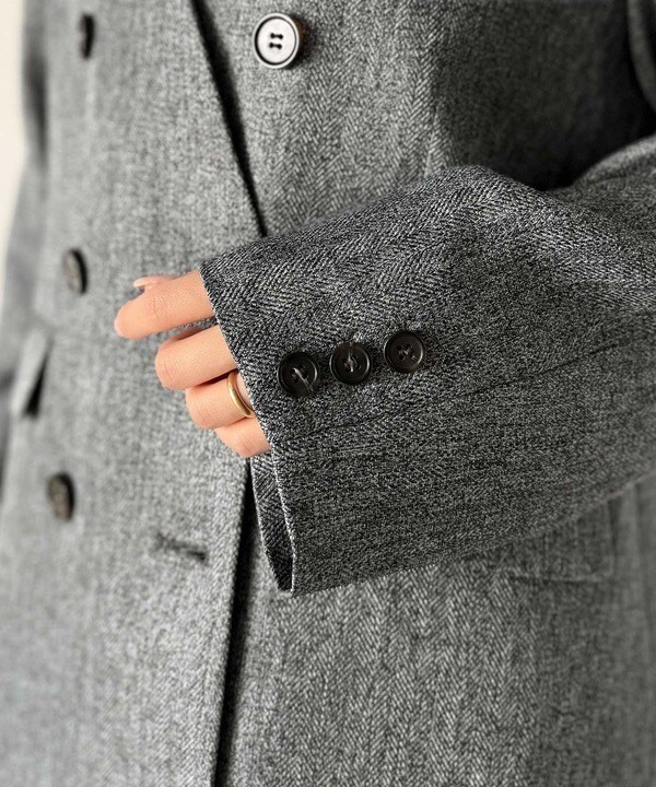 素材はウール調のメランジヘリンボーンで、表情豊かな奥行きを感じられる仕上がり。