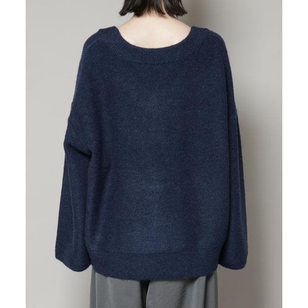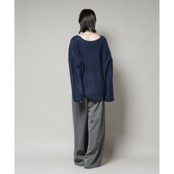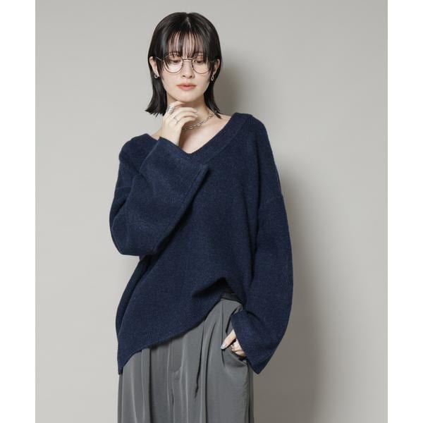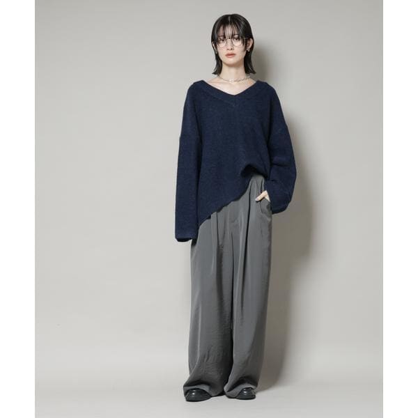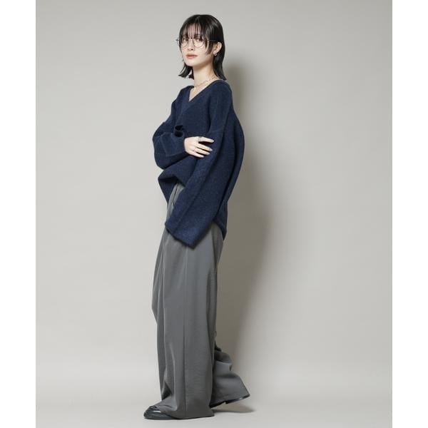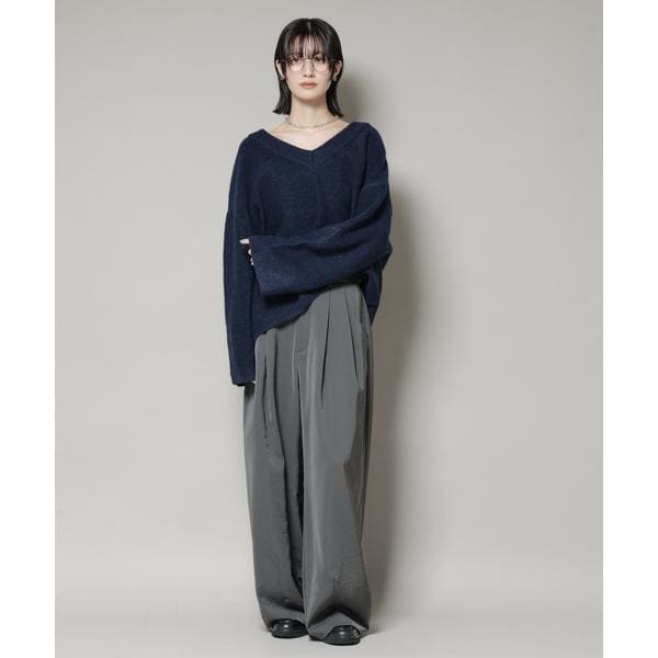 Vネックワイドシルエット圧縮ニット