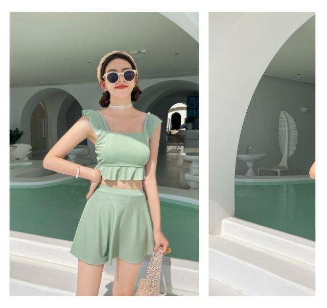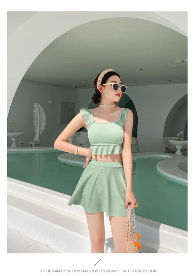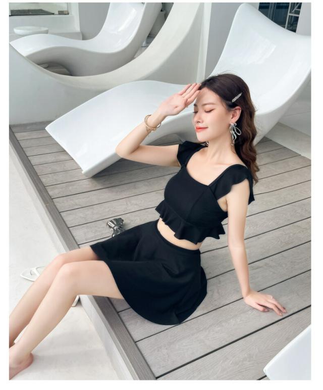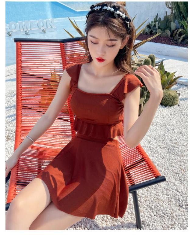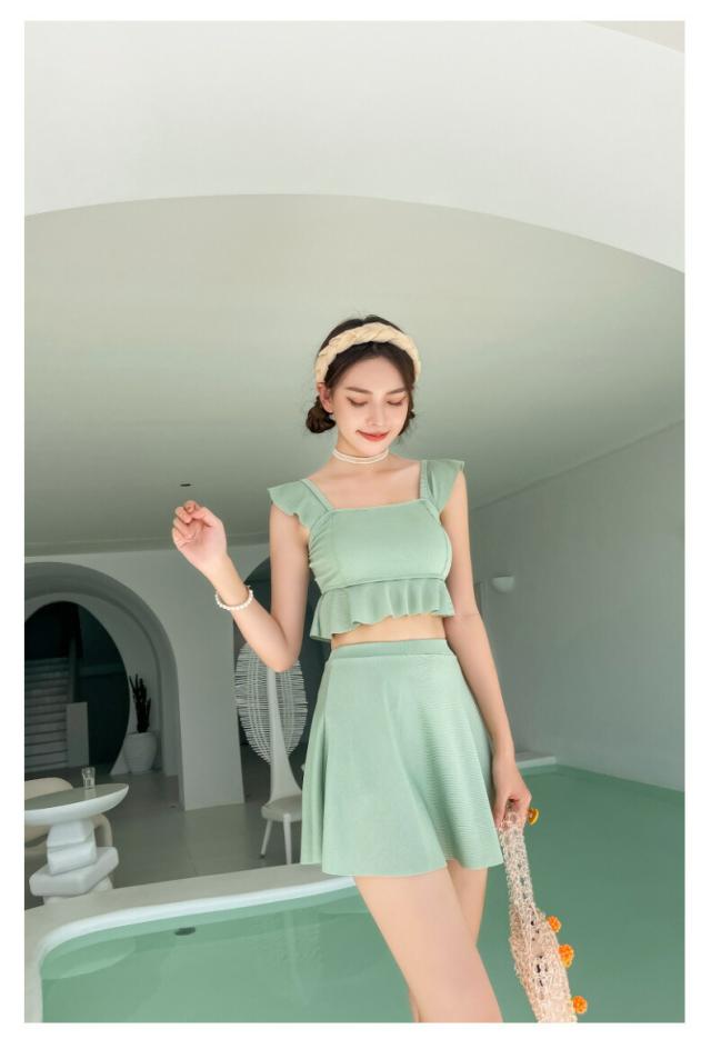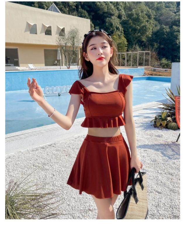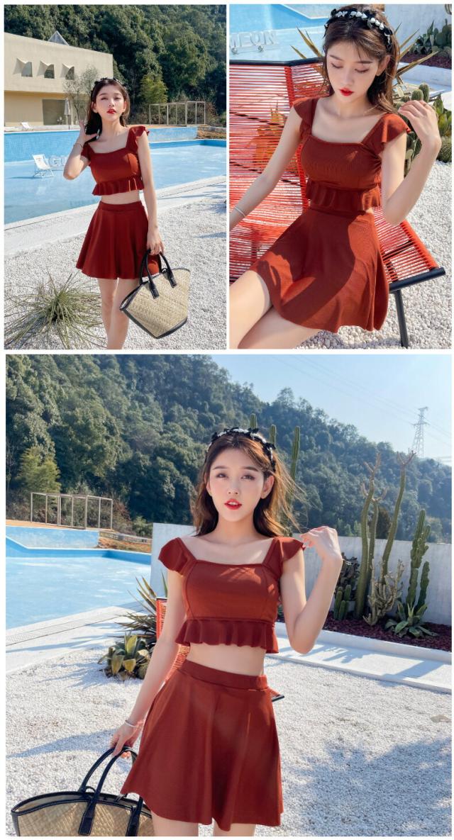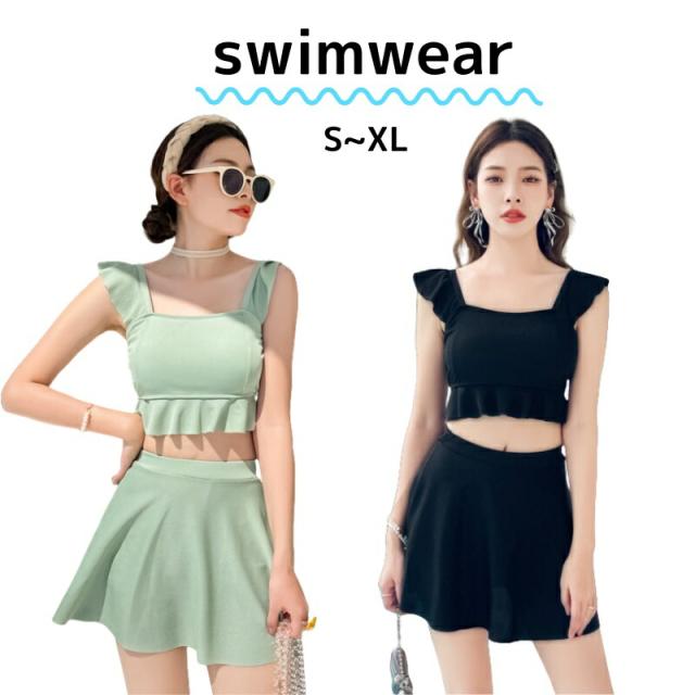 水着 レディース 体型カバー 可愛い フリル 小胸 韓国 タンキニ 2点セット 露出控えめ セパレート 上下セット スカート 可愛い水着 大人 温泉 プール みずぎ