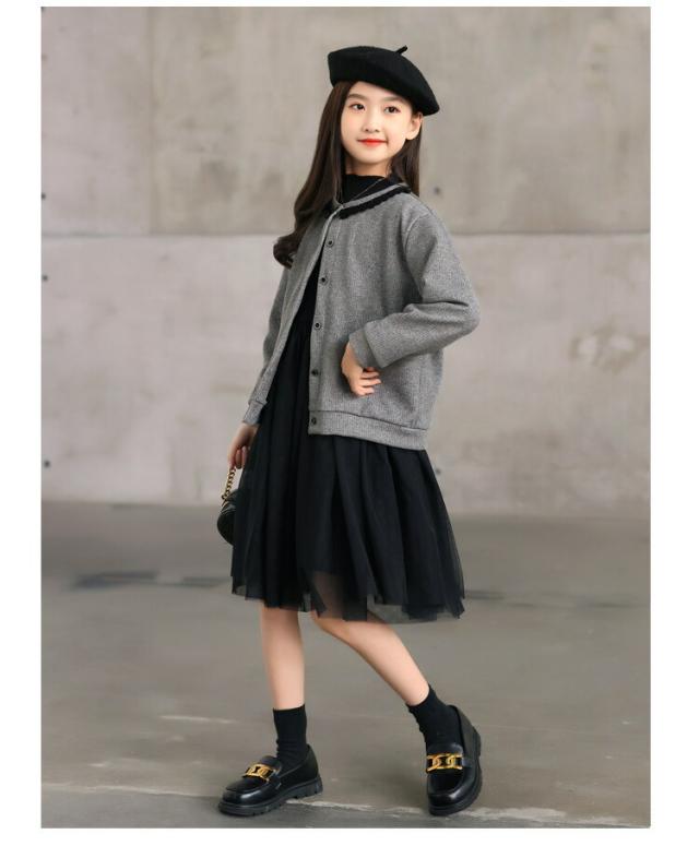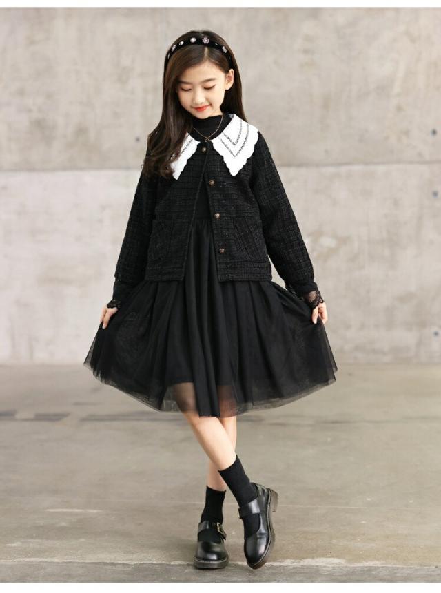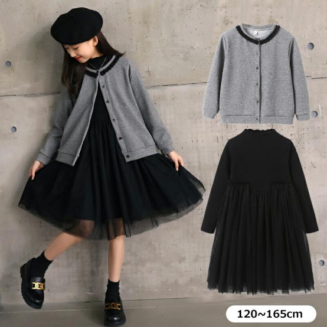 入学式 女の子 小学校 2点セット 礼服 セットアップ 長袖 カーディガン ワンピース プルオーバー キッズ フォーマル 子供 ブラック グレー卒園式 卒業式 七五三 撮影 発 結婚式