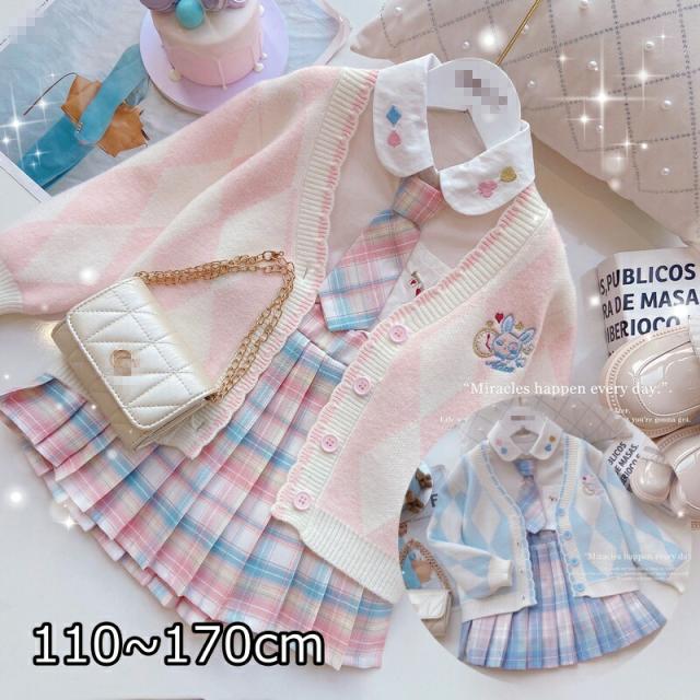 入学式 女の子 小学校 中学生 小学校 キッズ ベビー マタニティ 豊富な品揃え ブルー ピンク シャツ+スカート カーディガン+シャツ+スカート