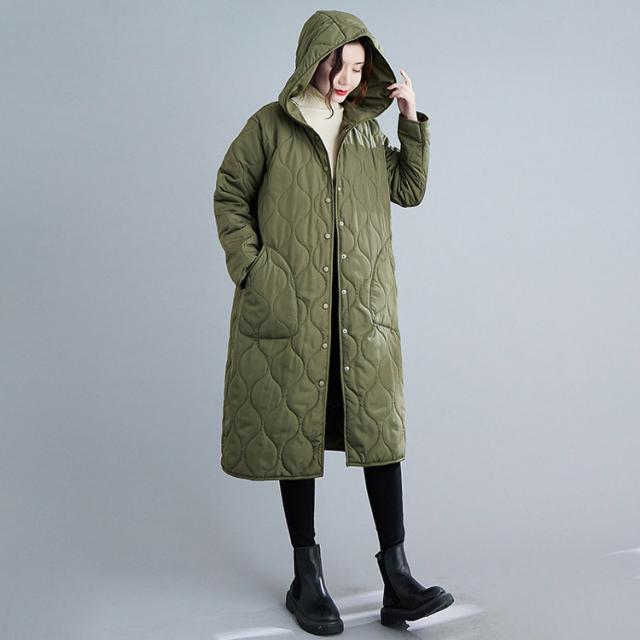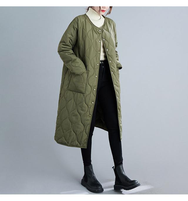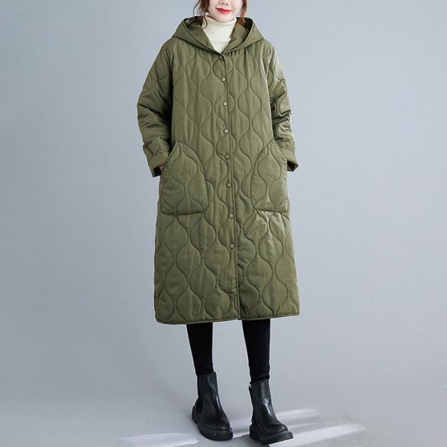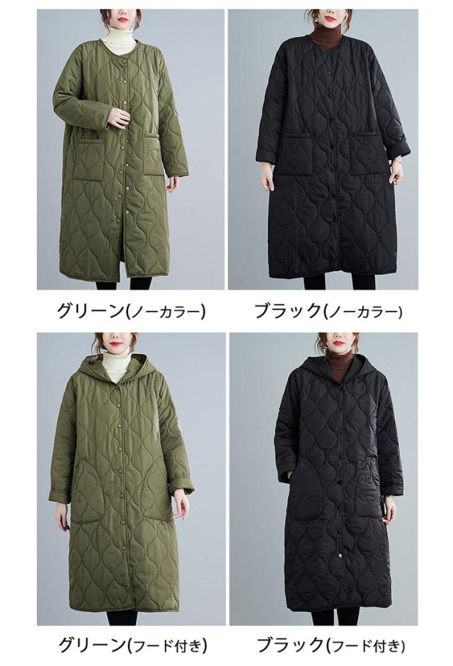 キルティングコート レディース ロング コート ジャケット お得なセール グリーン(ノーカラー) ブラック(ノーカラー) グリーン(フード付き) ブラック(フード付き) M L XL 2XL 3XL 4XL