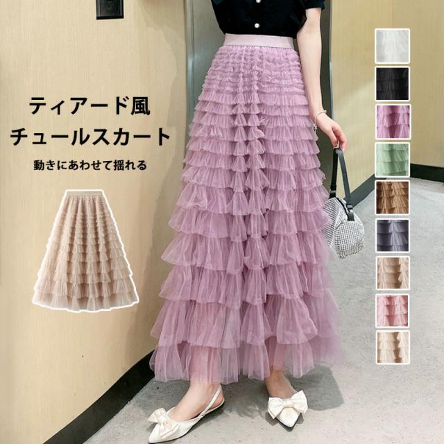 チュールスカート スカート レディース レディースファッション 特集 M L ホワイト ブラック ピンクパープル ライトグリーン ブラウン グレー ベージュ ライトピンク 杏色