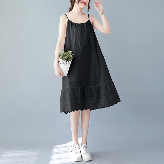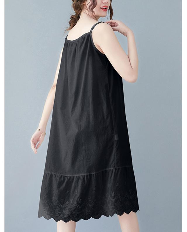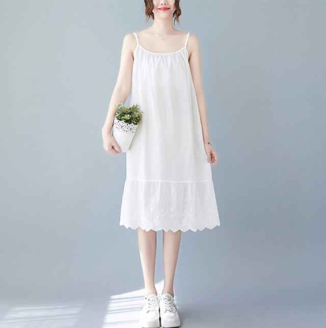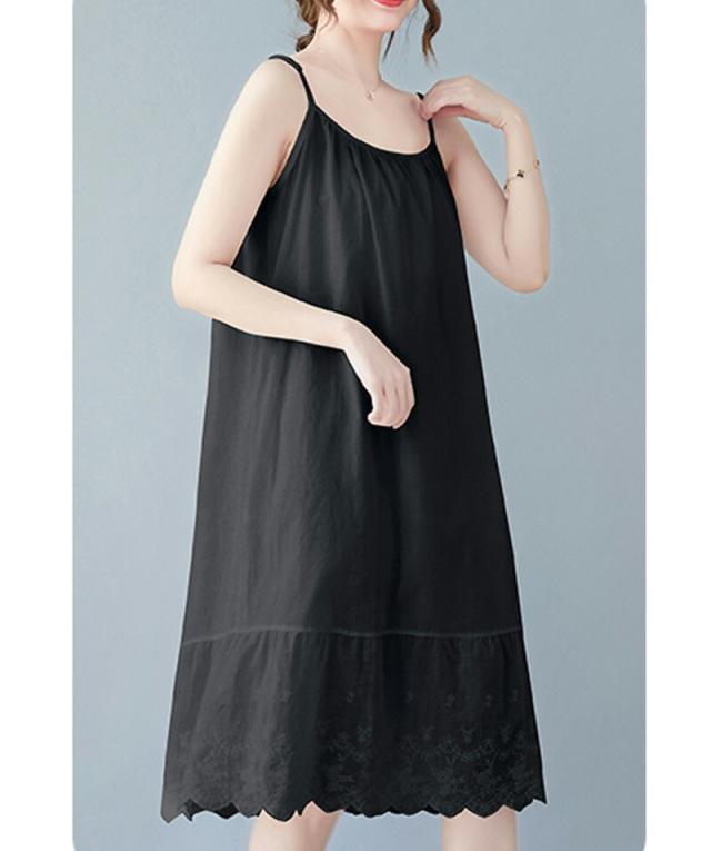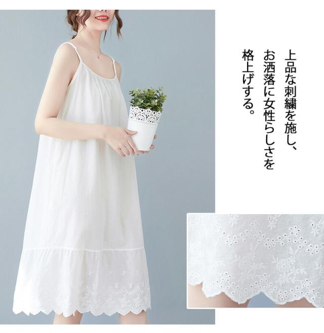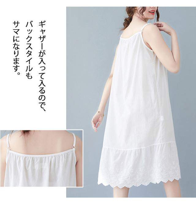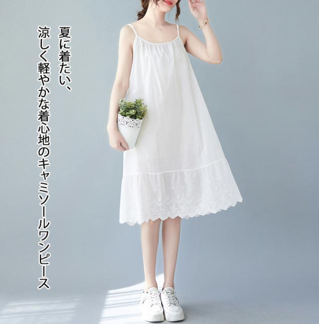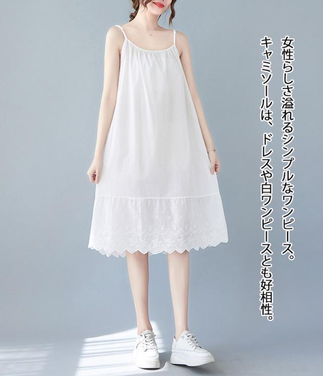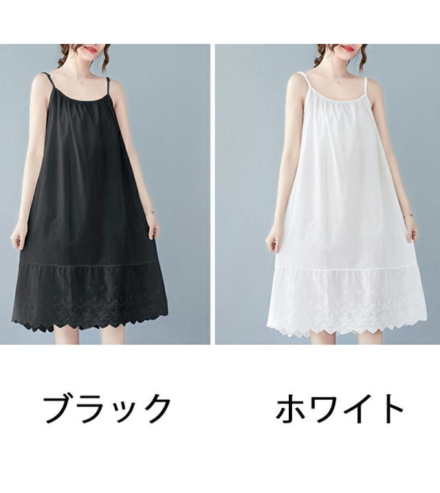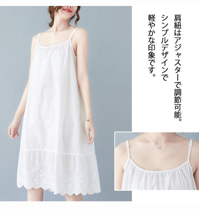 キャミソールワンピース ロング インナー レディース 肩紐付き 調節可能 刺繍 ペチワンピース ギャザー インナーワンピース ドッキング コットン ペチワンピ ワンピース ゆったり 春 夏 ラウドネッ