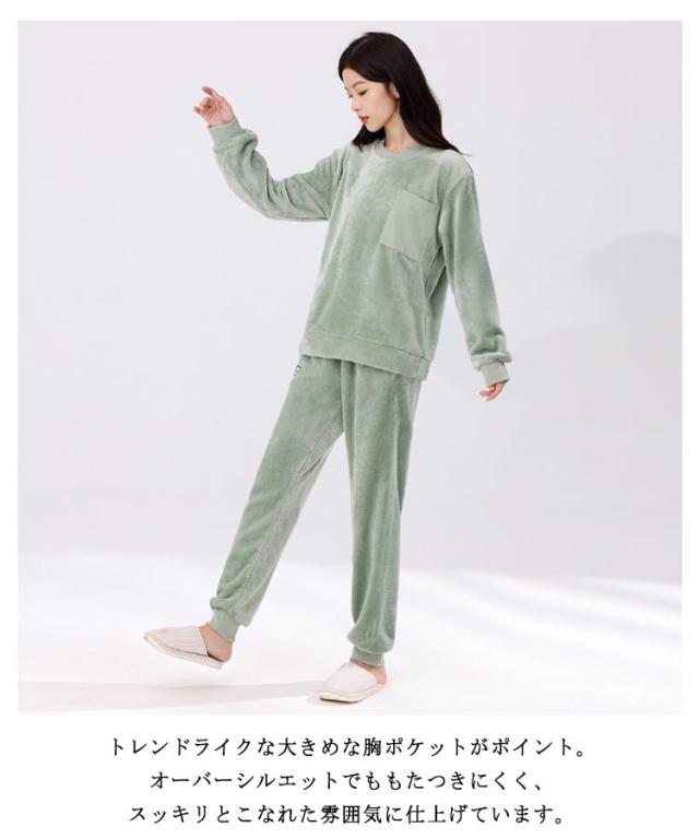 | ワンマイルウェアとしてもオシャレ女 やさしく着心地のいい素材感のルームウェア上下セット 無地ながらファッショナブルなゆったりとしたシルエット、軽量で肌触りもよく、おうち時間も快適に過ごすことが出来ます。 まるで毛布に包み込まるような暖かい着心地◎両面にふわふわ柔らかな質感のボアフリース生地をふんだんに使用。 トップスの袖口とパンツの裾はリブ仕様で冷気が入りにくい。朝まで暖かくてぐっすり眠れます。 パジャマに見えないよう、アウターライクなこだわりシルエットでちょっとしたお出かけにもOKなおしゃれさ♪ トレンドライクな大きめな胸ポケットがポイント。オーバーシルエットでももたつきにくく、スッキリとこなれた雰囲気に仕上げています。 | |