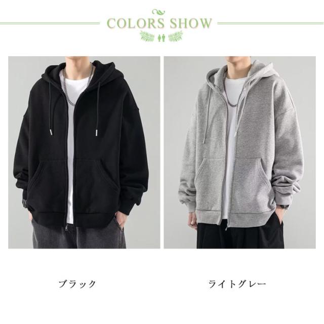 トップス パーカー ビッグパーカー アウター 秋服 ジップアップパーカー 無地 長袖 韓国ファッション 大きいサイズ メンズ 冬 大きいサイズ 秋 レディース パーカー 春 おしゃれ オーバーサイズ 体型カバー カジュアル ペアルック カップル 男女兼用 黒