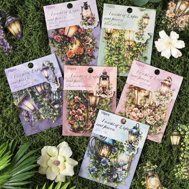 ST734 ランプ ランタン 明かり 照明 ライト 街灯 花 コラージュ素材 コラージュ シール ステッカー 紙もの 手帳 日記 海外 紙モノ 紙物