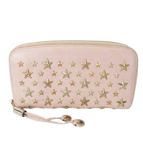 【中古】ジミーチュウ JIMMY CHOO 長財布 小銭入れあり ラウンドファスナー スタッズ 星 スター ピンク