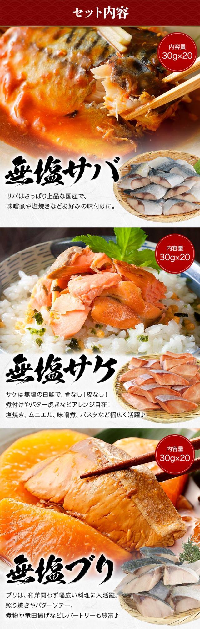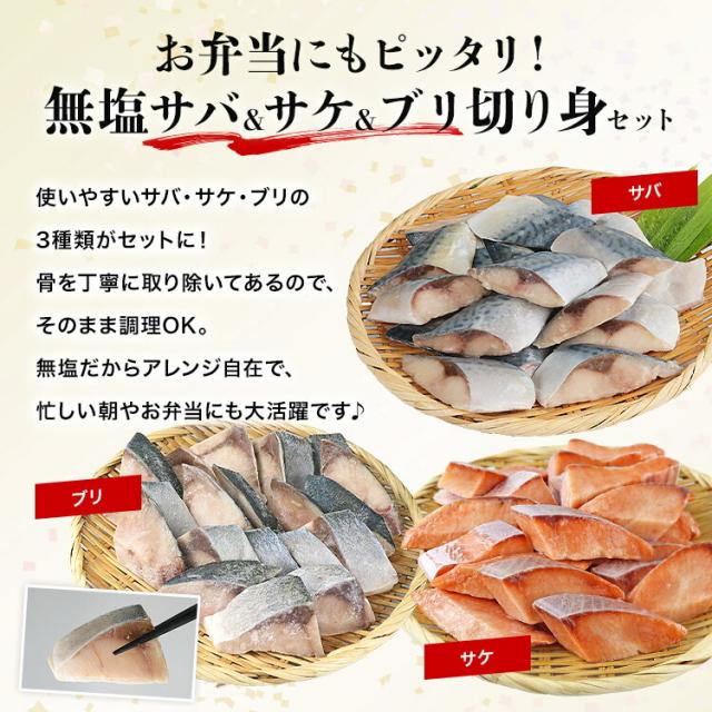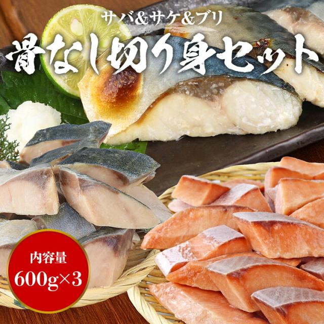 骨取り 無塩切り身セット さば さけ ぶり 600g(30g×20切)×3 冷凍 骨なし 鮭 サケ ブリ 鰤 鯖 サバ 一口サイズ