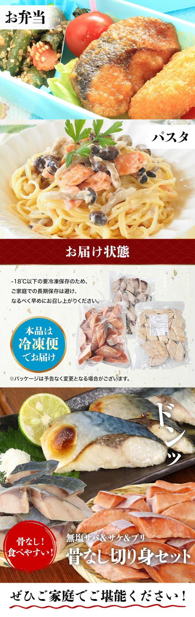 使いやすいサバ・サケ・ブリの3種類がセットに!