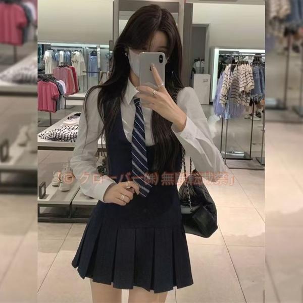 学生服 制服 シャツ ジャンパースカート ネクタイ 3点セット 女子高生 クローバー株式会社 長袖 スクールシャツ ショート丈 ミニ丈 プリーツスカート ワンピ