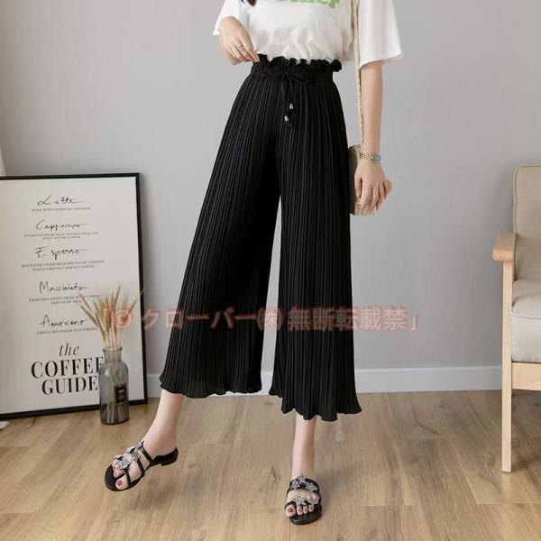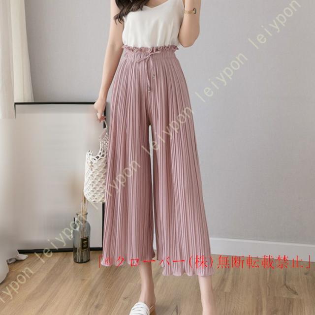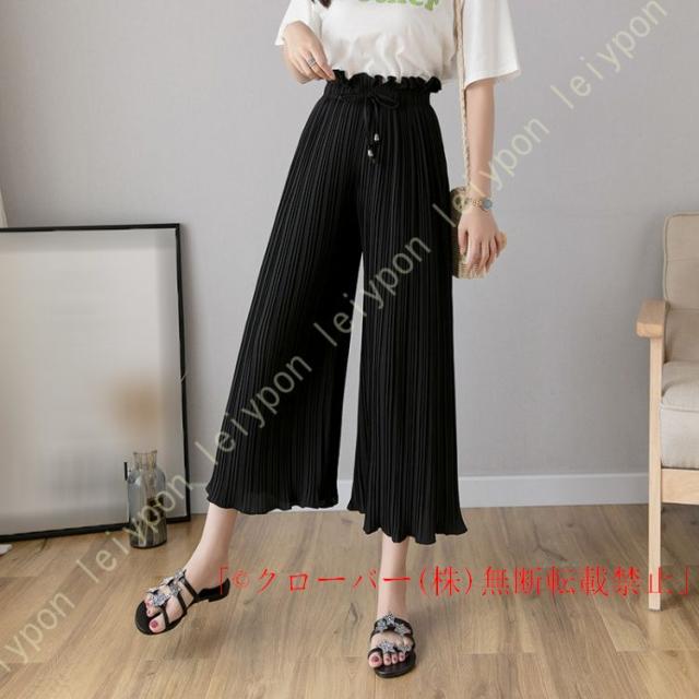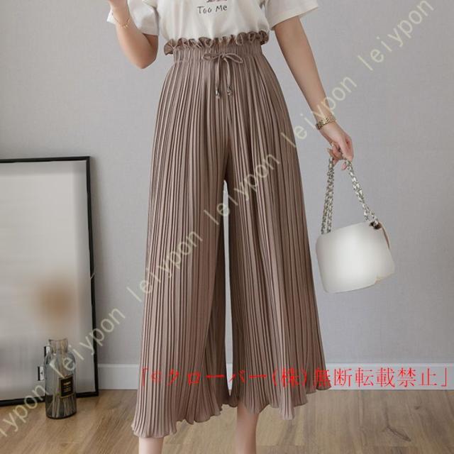 リラックスパンツ レディース ワイドパンツ ロングパンツ ガウチョパンツ キュロット ズポン クローバー株式会社 スカート シフォン プリーツ ウエスト ゴム ロング丈 薄手