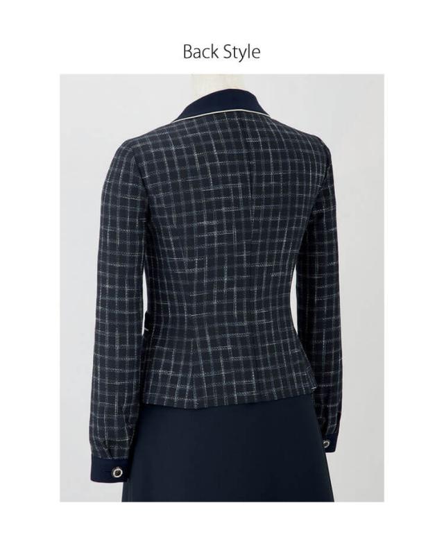 事務服 オフィス 接客 ユニフォーム 制服 en joie アンジョア 長袖オーバーブラウス 22170 カスリブロックチェック 2025年秋冬新作 サイズ5号〜15号