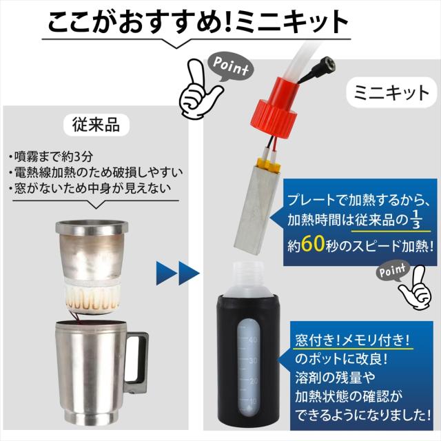 加熱ポットに漏斗を使って溶剤を約35〜45ml注ぎ入れ、ACアダプターまたはシガーソケットを接続して加熱を開始します。