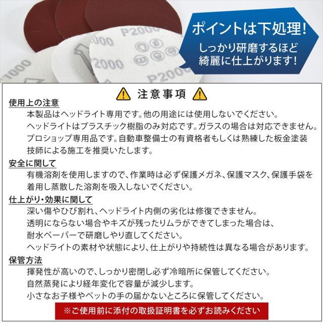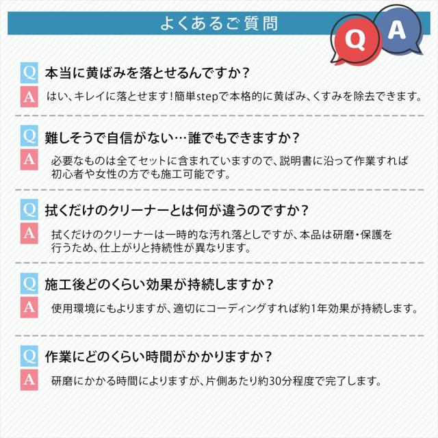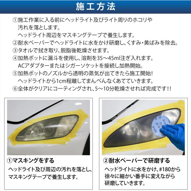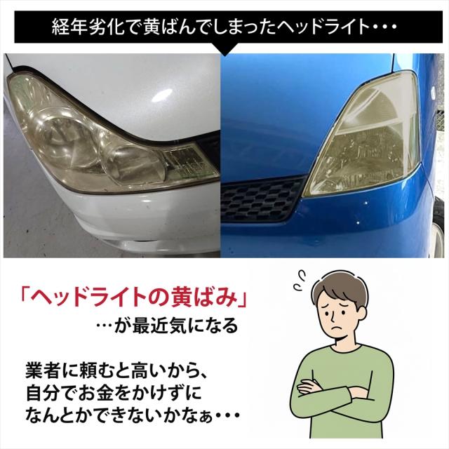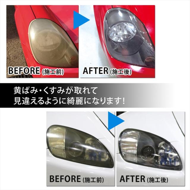 ヘッドライトの素材や状態により、仕上がりや持続性は異なる場合があります。
