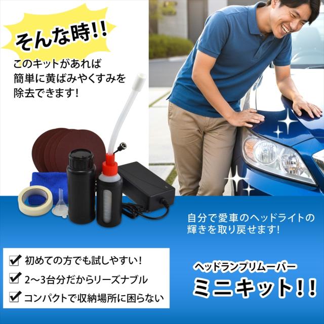 愛車のヘッドライトを短時間でクリアに蘇らせる、便利なヘッドランプリムーバー ミニキット が登場。