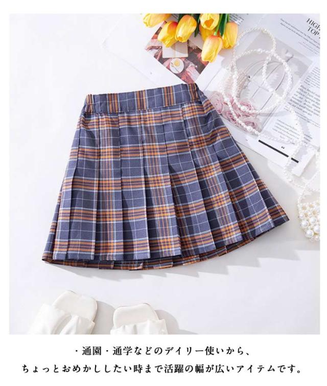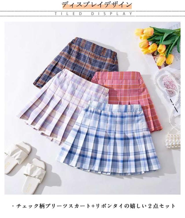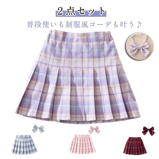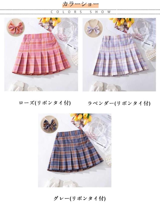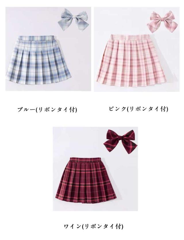 2点セット プリーツスカート キッズ チェック柄 リボンタイ付き インナーパンツ付き JK制服 ジュニア ミニスカート 中学生 小学生 ハロウィン コスプレ 入学式 卒業式