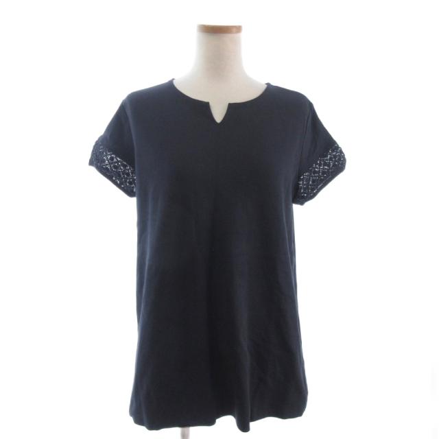 【中古】ドゥクラッセ 美品 カットソー ブラウス 半袖 レース 切替 コットン 30866-490 ダークグレー L レディース