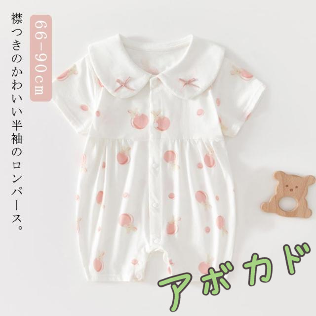 ベビー服 ロンパース 半袖 女の子 73 パジャマ 前開き ベビー 赤ちゃん服 春夏 綿 薄手 コットン 子供服 肌着 新生児 新生児服 かわいい えり付き ルームウェア 66 カバーオール 80 90cm いちご柄 くま柄 ベビー おしゃれ かわいい