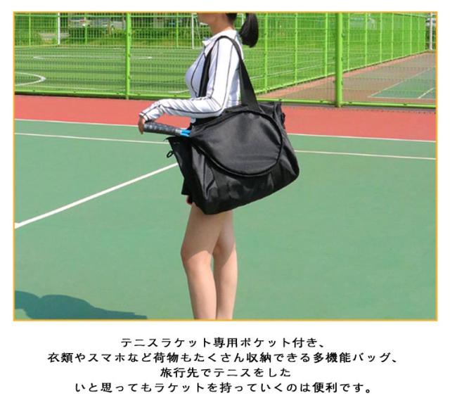 | 旅先でもこれ一つテニスが楽しめるラケットバッグ テニスラケット専用ポケット付き、衣類やスマホなど荷物もたくさん収納できる多機能バッグ、旅行先でテニスをしたいと思ってもラケットを持っていくのは便利です。 取り外し可能のショルダーストラップ付き、斜め掛けも肩掛けもできる2way仕様スポーツバッグ。 耐摩耗性がよい、水や汚れに強い撥水オックスフォード生地、雨の日も安心。 旅行かばん、ジムバッグなど幅広い用途に使用することできます。 毎日の通勤、学校、旅行、出張用バッグとしても活躍できます。 | |