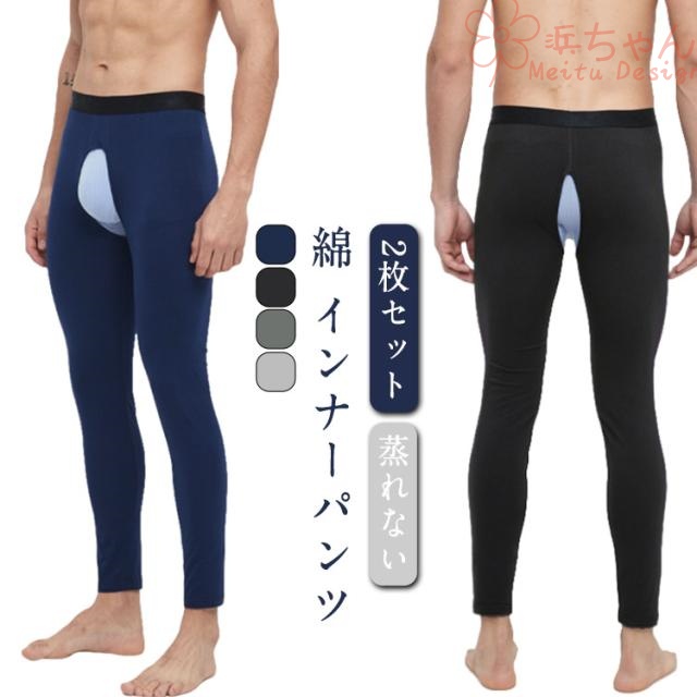| 【2枚セット】【蒸れない】【綿 インナーパンツ】 蒸れずにしっかり温かいメンズ用レギンス。 伸縮性が高い素材なので身体にほどよくフィットします。 綿混なので、やさしく心地よい肌触りです。 前あき・後ろあきタイプでアウターに響きづらくスタイル維持できます。 | |