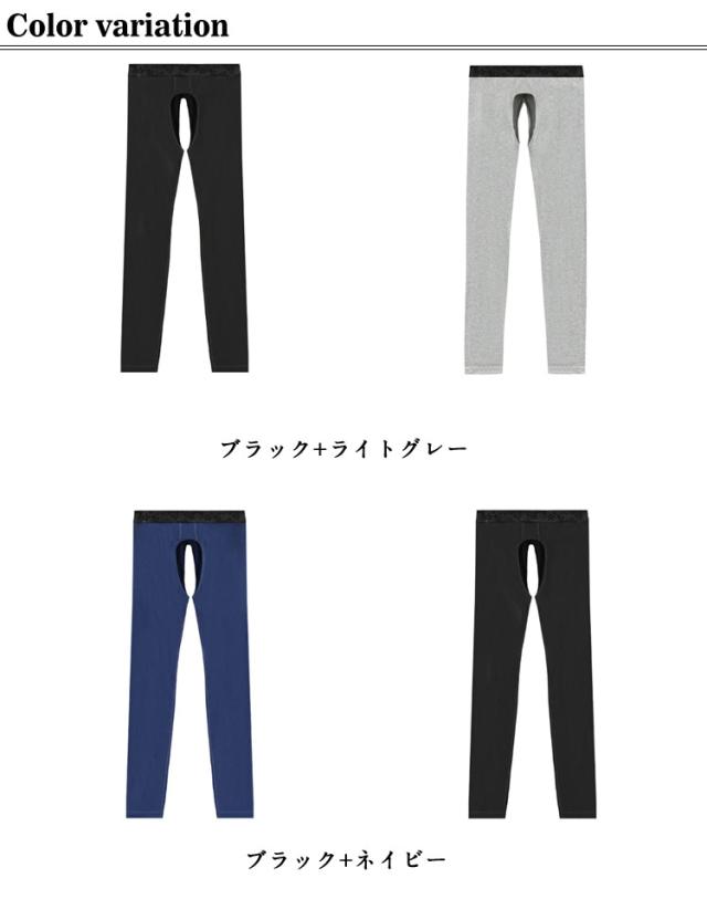 前あき あったか 綿混 2枚組 レギンス タイツ 2枚組 下着 インナー 穴あき インナーパンツ ストレッチ スパッツ 防寒 寒さ対策 蒸れない ジェンダーレス クロスジェンダー 秋冬 秋 冬