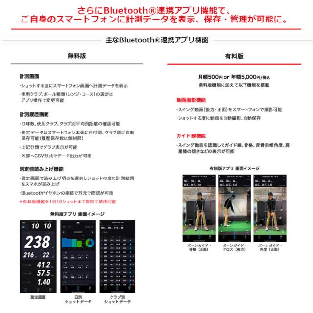 従来の測定機能はそのままに、Bluetooth搭載し、スマートフォンとの連携が 可能に。専用アプリとの連動で、計測データの履歴を管理できるなど、自分のデータ をより詳細に把握することができ、更なるレベルアップの近道に。