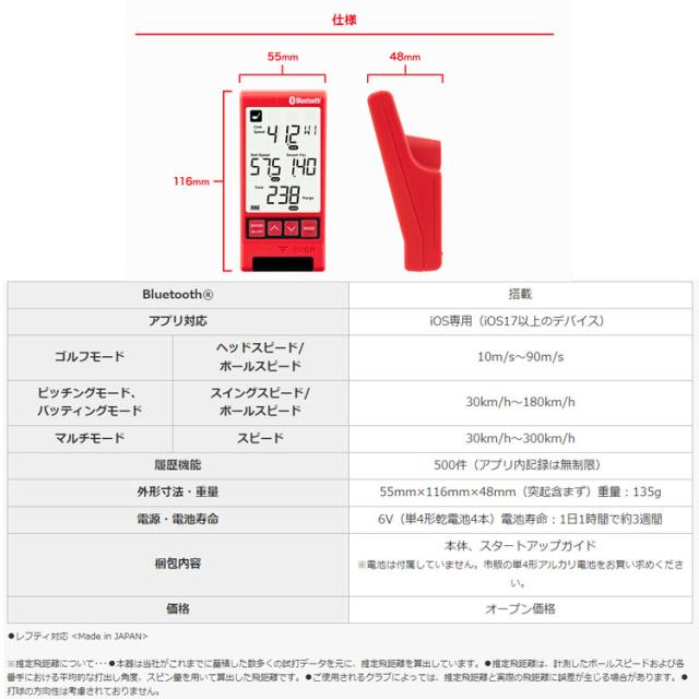 一人で簡単にヘッドスピード、ボールスピード、ミート率、飛距離測定ができる と大好評の「RED EYES POCKET」にBluetooth搭載の「HS-130_BLE」が新登場。