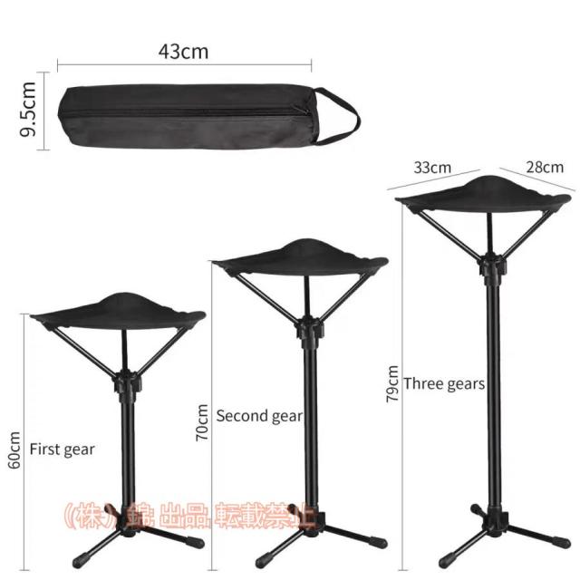 アウトドアチェア折りたたみ椅子キャンプチェアモバイルチェアスタンディングチェア耐荷重150KGコンパクト伸縮式高さ調整超軽量持ち運び便利3本脚