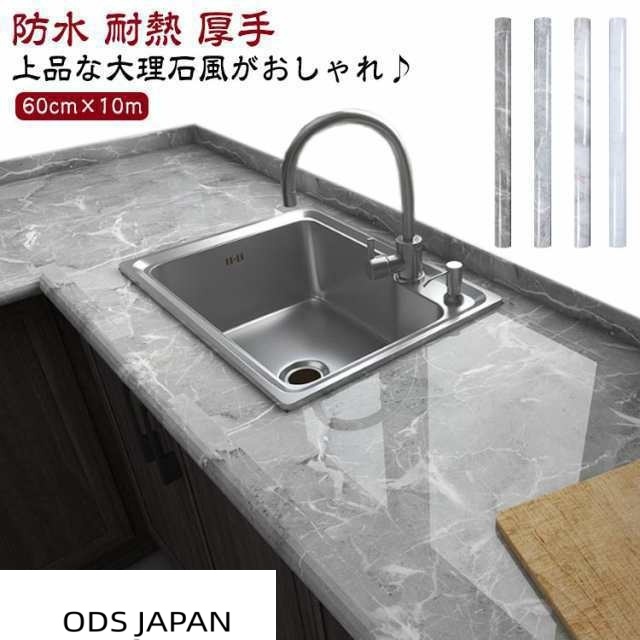キッチンシート はがせる 約60cmx10m 大理石 壁紙シール リメイクシート 防水 耐熱 厚手 裏面アルミ キッチン 壁紙 マーブル柄 タイルシール 貼ってはがせる のり付き 油 ブリック レンガ 水回り 台所 粘着シート 家具 diy 張り替え インテリアシート ダイニングテーブル