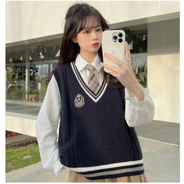 風 ベスト 女子高生 スクール 春 スクールベスト 男子 学生 スクール ベスト 高校生 Vネック 女子 中学生 高校生 スクールベスト 制服 制服 秋 通学 ニット 中学生女子 刺繍 無地 可愛い ゆったり 薄手 学生服 ノースリーブ 重ね着 プルオーバー 体型カバー