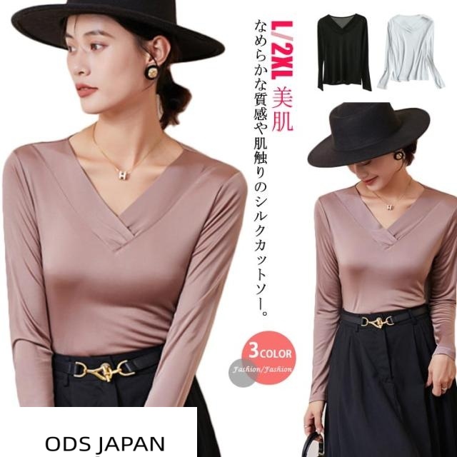 送料無料 シルク tシャツ 長袖 シルク カットソー レディース シルク混 Vネック Tシャツ トップス 絹 インナー シームレス ティーシャツ 肌着 下着 保温 保湿 敏感肌 低刺激 乾燥肌 美肌 潤い 快適 光沢 ストレッチ 無地 シンプル 上品 エレガント オールシーズン 母の日