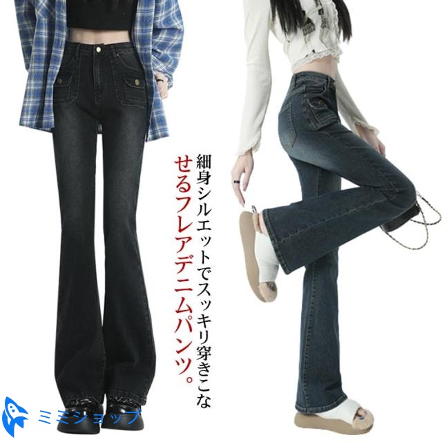 | 細身シルエットでスッキリ穿きこなせるフレアデニムパンツ。 こなれ感を演出してくれるウォッシュ加工。 フレアデザインでシルエット綺麗に、脚長効果も。 伸縮性抜群!着回し力抜群でコーデの幅が広がるお洒落デニム! ハイウエストでスタイルアップ、様々なトップスと相性をよく着回しできます。 | |