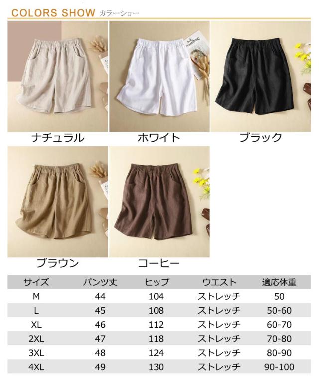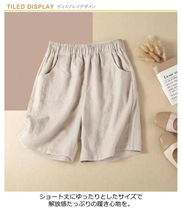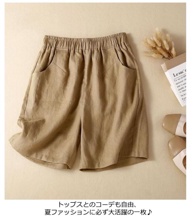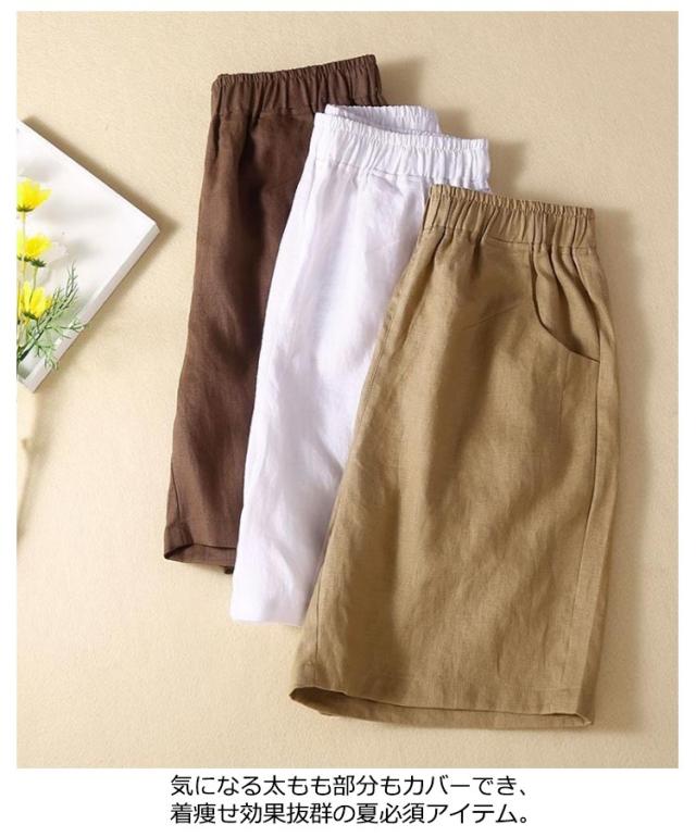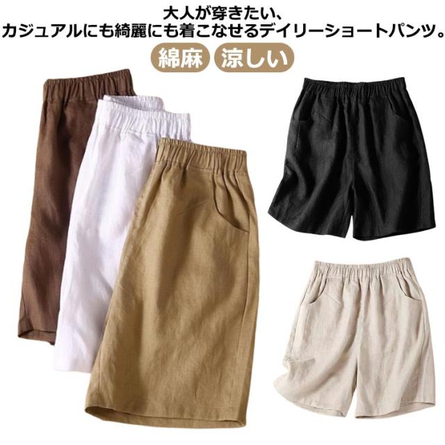 綿麻 涼しい レディース ショートパンツ パンツ ハーフパンツ ワイドパンツ 麻 5分丈 リネン 麻 送料無料 レディース 無地 パンツ ウェストゴム 大きいサイズ 部屋着 ブラック ゆるパンツ ナチュラル ホワイト リネン ブラウン