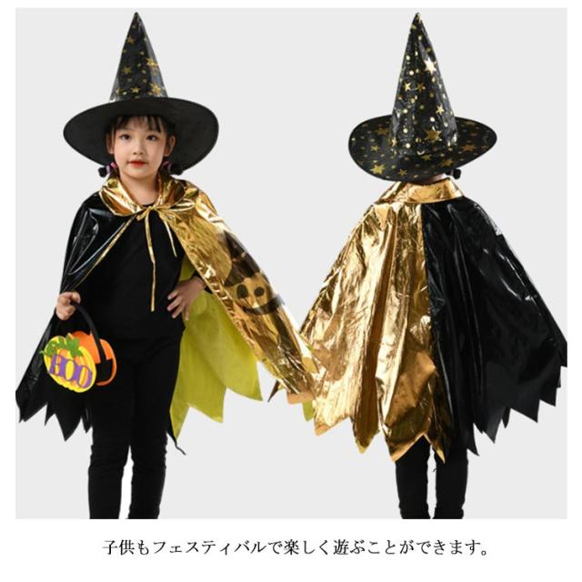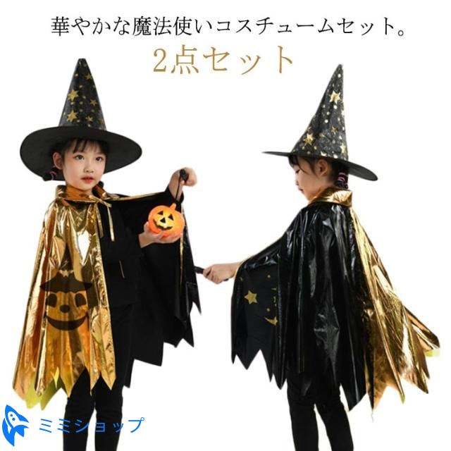 イベント 魔法使い コスプレ衣装 変装 2点セット マント+帽子 キッズ お遊戯会 魔法使い 子供 ケープ ハロウィン パーティー かぼちゃ女の子 演出服 仮装 巫女 星柄 悪魔 魔女 男の子 表会 コスチューム 幼稚園 小学校