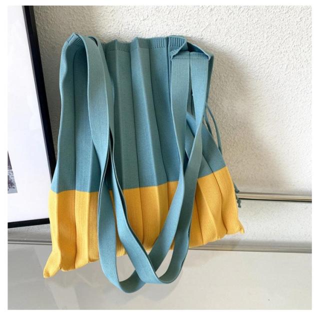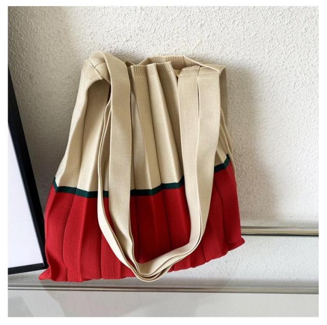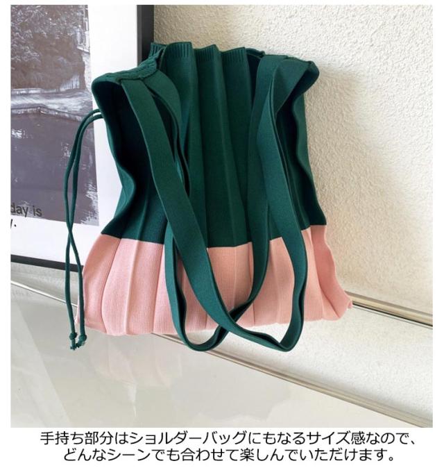トートバッグ ニットバッグ ニット 大きめ トートバッグ レディース 大人 プリーツ ミニバック 切り替え ミニトート バッグ かばん おしゃれ エコバック 鞄 トート サブバッグ ニット 軽量