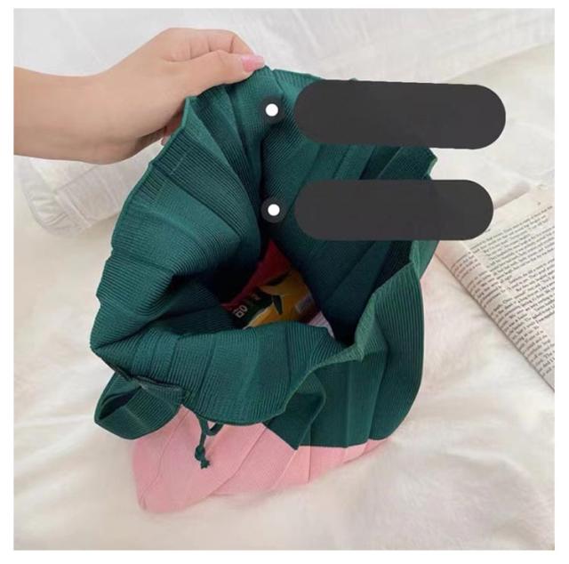 | トレンドのプリーツ巾着バッグ。コンパクトなサイズ感とフォルムが可愛い♪ ユニークなデザインとフォルムがアイキャッチになって、持つだけでコーデの主役アイテム。 手持ち部分はショルダーバッグにもなるサイズ感なので、どんなシーンでも合わせて楽しんでいただけます。 コンパクトに折りたたんで持ち運びが可能なため、エコバッグやサブバッグとしてもおすすめです。 | |