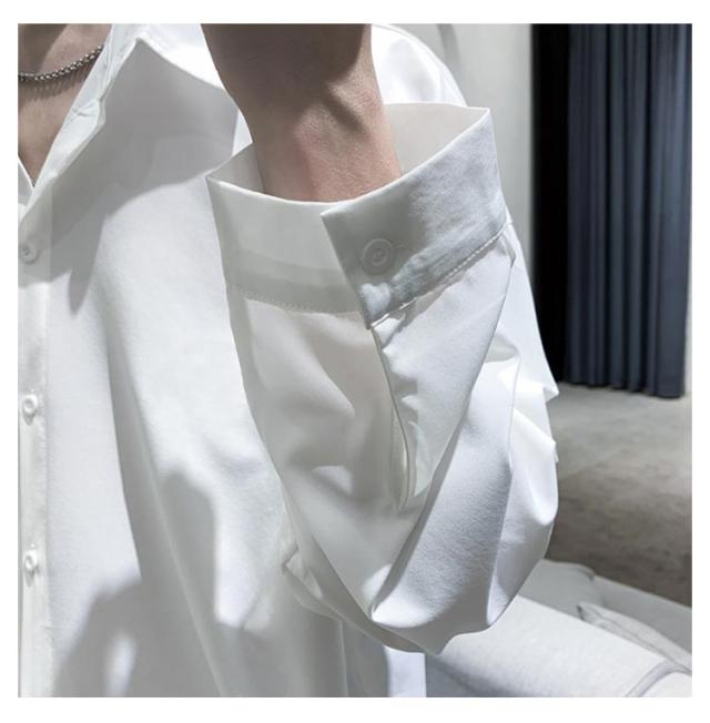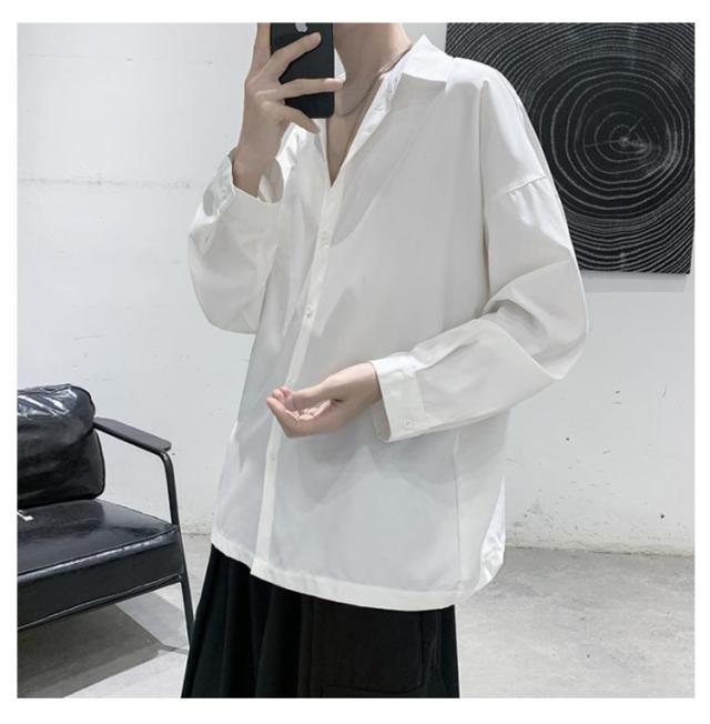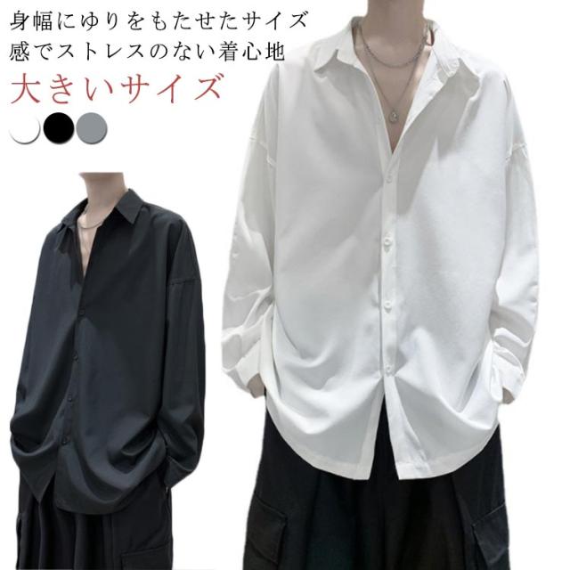 長袖シャツ メンズ 長袖 ドロップショルダー 袖が長い 大きいサイズ カジュアルシャツ 白シャツ メンズ オーバーサイズシャツ メンズ ゆったり 春 長袖シャツ メンズ おしゃれ 春 春物 春服 ワイシャツ Yシャツ 羽織り ビッグシルエット 無地