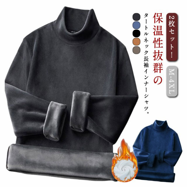 柔らかい あったか メンズ 長袖 ハイネック 2枚セット ロンT インナー ストレッチ インナーシャツ 防寒着 肌着 シャツ 防寒 ヒートインナー あったかインナー トップス 2枚セット 秋冬 カットソー タートルネック 裏起毛 保温