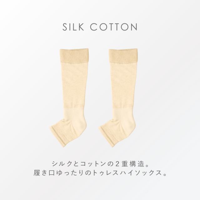 つま先なし 靴下 ソックス つま先なしソックス シルク 履き口 ゆったり 締め付けない つま先なし靴下 内側シルク2層ゆったりトゥレスハイソックス メール便対応