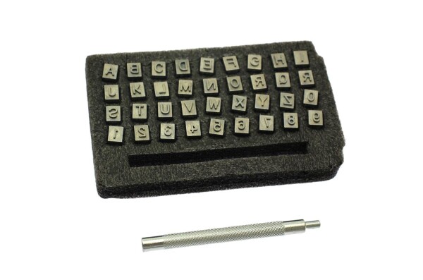 レザークラフト用の英字と数字の刻印セットです。ハンマーで叩いて打刻するだけなので使い方は簡単です。