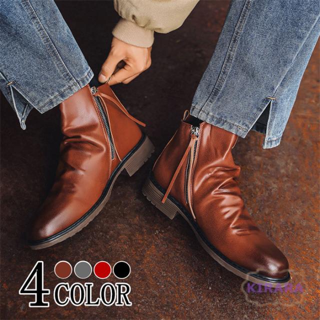ショートブーツ エンジニアブーツ メンズ 革靴 ビジネスシューズ バイクウエア サイドジップ 防風防寒 防水 通勤 滑り止め 紳士靴 モカシン カジュアル お兄系 おしゃれ 大きいサイズ