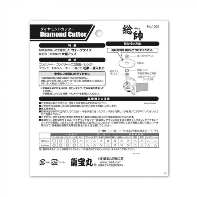 高芝ギムネ製作所 龍宝丸 総帥 MAXウエーブφ105 ダイヤモンドカッター φ105X2.2(刃厚)X20 No.1061 |b03