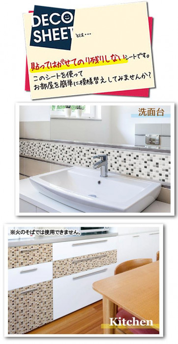 | 賃貸住宅でもDIYを楽しみたい!!そんなあなたにピッタリ♪貼りたい場所のサイズに、ハサミで簡単にカットすることができます。ピタッと簡単に貼れてズレないのに、キレイにはがせます。防水性に優れているので、汚れてもサッと拭くだけでOKです。 ※本製品の性質上、パターンマッチング(柄合わせ)は出来ません。 ※印刷品の為、生産ロットにより多少色目の差が生じる場合があります。 |