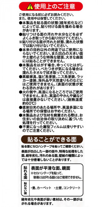 | 素材・材質 | 表面:塩化ビニル樹脂 中間層:ポリエステル 粘着剤:アクリル系樹脂 |