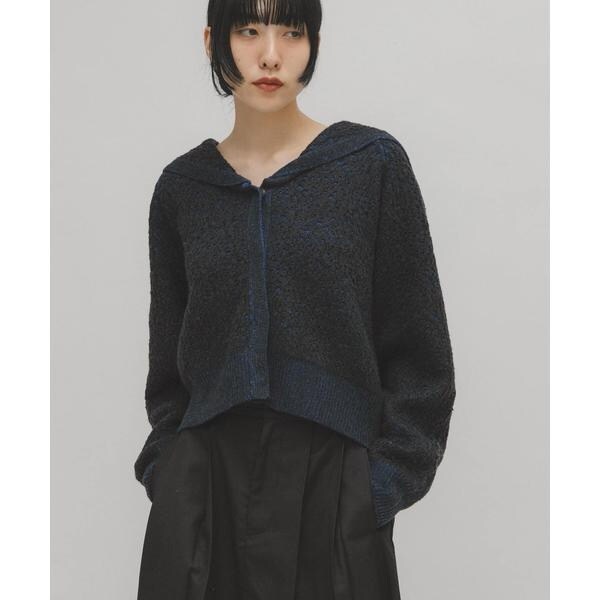 立体的なジャガード柄が存在感を放つカーディガン。ブルゾンのようなシルエットや、セーラーカラーディテールにしたりと360度どこから見ても抜かりのないデザインに仕上げました。フロントはVネックになっているので、Tシャツやハイネックトップスをインナーに入れたレイヤードスタイルも楽しめます。