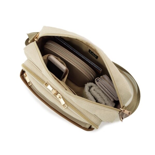 フロント部分にはファスナーポケットが2つ、背面には2つのオープンポケットがあり、多ポケットなので荷物の仕分けに便利です。