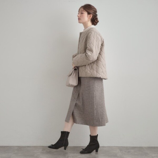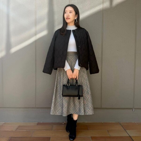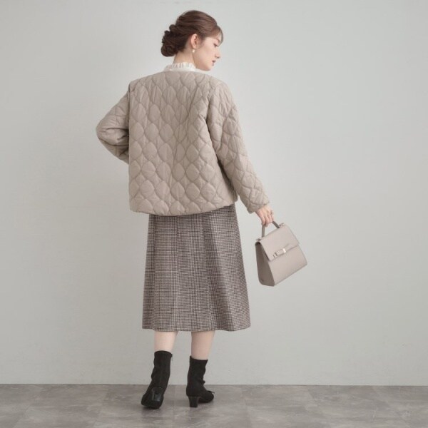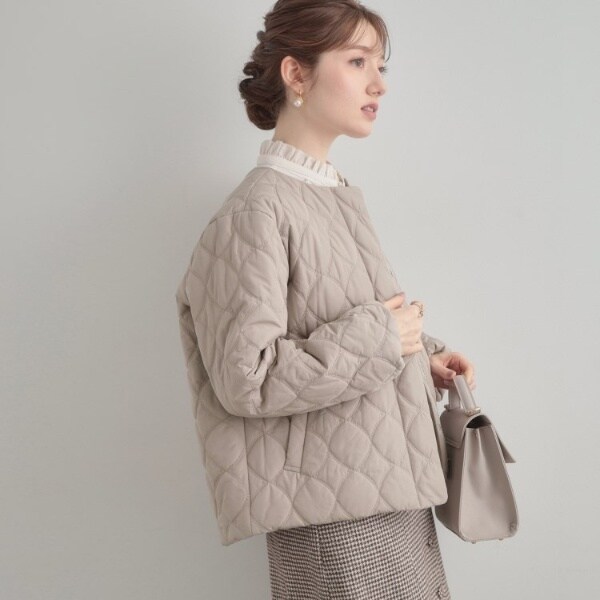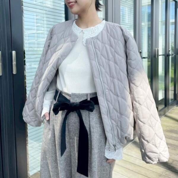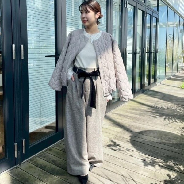 カジュアル中にフェミニンムードもプラスしてくれる、キルティングジャケットです◎裾を絞ると柔らかいフォルムで着ていただけて、合わせるアイテムやテイストで着こなしを変えられるところもおすすめのポイントです!