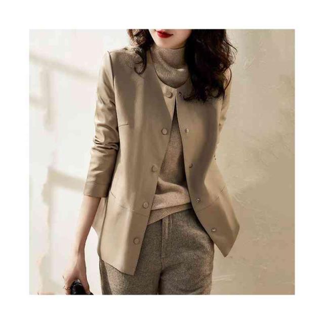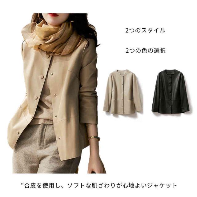 ノーカラージャケット フェイクレザー 合皮ノーカラージャケット アウター レディース 春秋 冬 ジャケット 裏ボア 長袖 黒 無地 きれいめ カジュアル 大人 シンプル オフィス